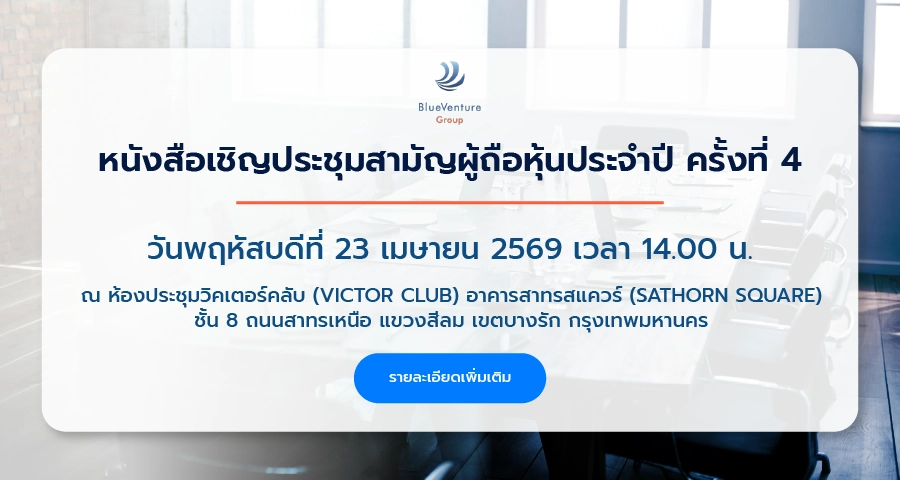 ปัจจุบัน BlueVenture Group คือกลุ่ม InsurTech ที่ให้บริการดิจิทัล เซอร์วิส โซลูชั่น ระบบแพลตฟอร์ม แอปพลิเคชัน และบริการเฉพาะทาง ที่มุ่งมั่นขับเคลื่อนธุรกิจ ด้วยการพัฒนาเทคโนโลยีนวัตกรรม ให้ดียิ่งขึ้น เพื่อตอบโจทย์ทุกความต้องการของลูกค้า นำข้อมูลมาประมวลผลอย่างถูกต้องแม่นยำ ให้เกิดประสิทภาพสูงสุด ด้วยทีมงานที่มีประสบการณ์และความเชี่ยวชำญเฉพาะทาง ทั้งยังสร้างสรรค์ระบบที่ดีก่อประโยชน์ให้กับโดยรวม สู่การขยาย Network ที่เกี่ยวข้องให้ครอบคลุม บริการใหม่ๆ ที่สมบูรณ์ยิ่งขึ้น นอกจากนี้ บริษัทฯ ได้ยึดมั่นการดำเนินธุรกิจ โดยคำนึงถึงสิ่งแวดล้อม สังคม และบรรษัทภิบาลอย่างต่อเนื่อง พร้อมให้ความสำคัญกับ ความปลอดภัยทุกข้อมูลของลูกค้าในระดับมาตรฐานสากลเสมอเพื่อสร้างการเติบโตที่ยั่งยืน